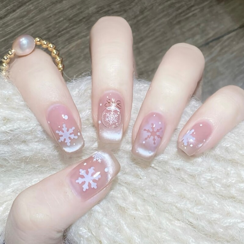 以淡淡嫩嫩的颜色做渐层打底,再加上雪花很可爱。