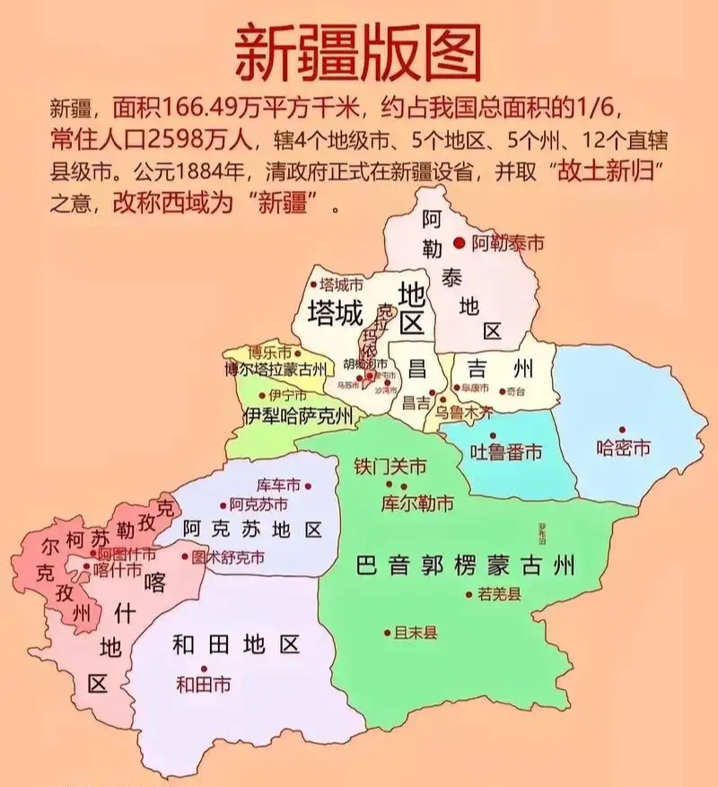 2024年,新疆GDP20534亿元,增长6.1%,增速高于全国1.1个百分点 。县域经济主要体现在依托资源优势发展特色产业。例如,库尔勒市形成了以石油化工、特色农业、商贸物流、文化旅游为支柱的多元化经济体系,GDP达1102.5亿,是新疆唯一的千亿县。若羌县凭借红枣产业,农民人均可支配收入超3万元,同时还依托矿产资源发展相关产业 。福海县被誉为“中国驼奶之都”,推动驼奶产业科学化、规模化发展 。阿勒泰地区的布尔津县则利用丰富的“风光水”资源,打造绿色生态循环产业 。新疆多个县域还借助旅游资源优势,大力发展旅游业 。